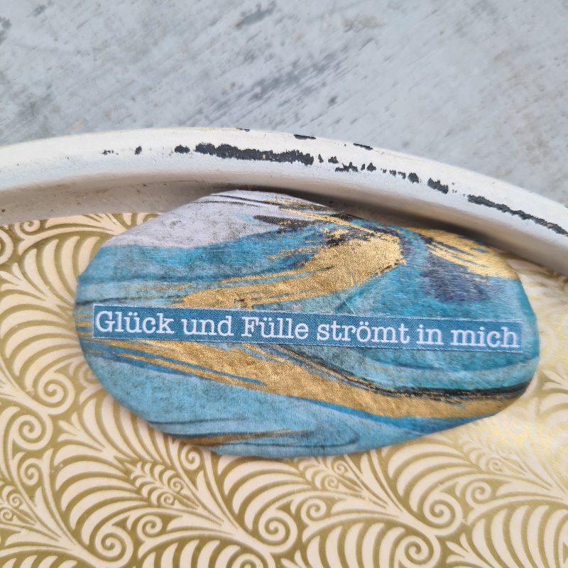 Mögen Fülle und Glück in Dich strömen! Fülle ist überall und das Glück gebiert sich aus dem Moment… Vielleicht ja, wenn Du diesen zauberhaften, türkis-goldenen Stein in Deinen Händen hältst.