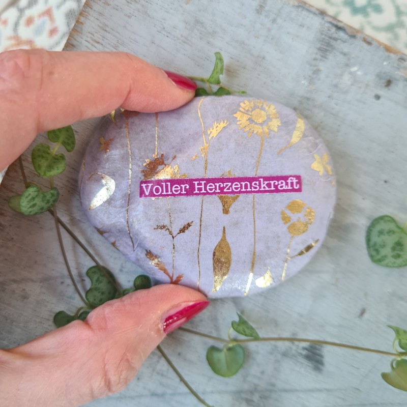Herzenskraft ist nicht einfach nur ein Wort. Deinem Herz wohnt eine wunderbare Kraft inne und es erzeugt ein weit größeres elektromagnetisches Feld als Dein Hirn. Und es ist weise, weiß Dinge früher und besser als Dein Kopf. Möge Dich dieser zauberhafte lila-goldene Stein daran erinnern, auf Deine Herzenskraft zu vertrauen.