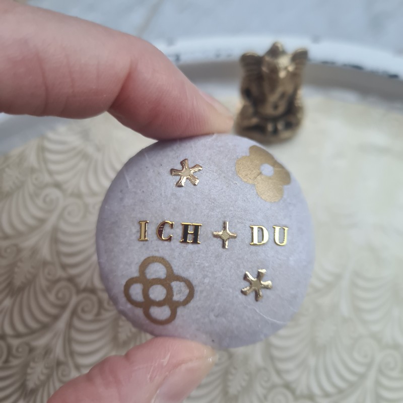 Ich und du. Du und ich. Dieser helle, runde Stein ist im Nachklang einer intensiven Übung entstanden, die wir auf einem Empowering-Retreat in Sri Lanka gemacht haben. Das ging tief: sich im anderen erkennen und spüren, was wir miteinander zu tun haben, wenn wir uns auf einer tiefen Ebene verbinden. Buchtipp dazu: Ich bin Du von Wolfgang Kerschbaummayr.