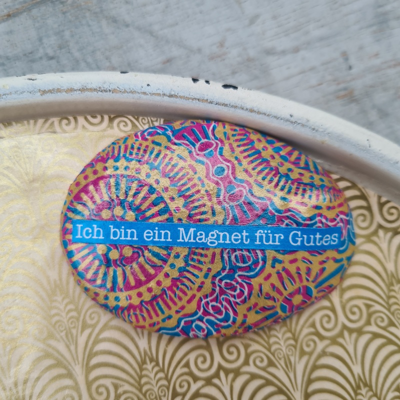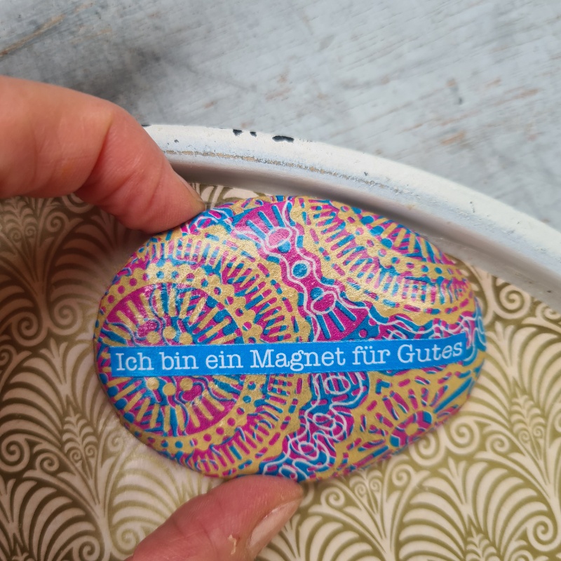 Ich bin ein Magnet für Gutes: eine kraftvolle Affirmation auf einem hübschen Stein, damit Dir Gutes und Schönes widerfährt und alles andere von Dir abprallt.