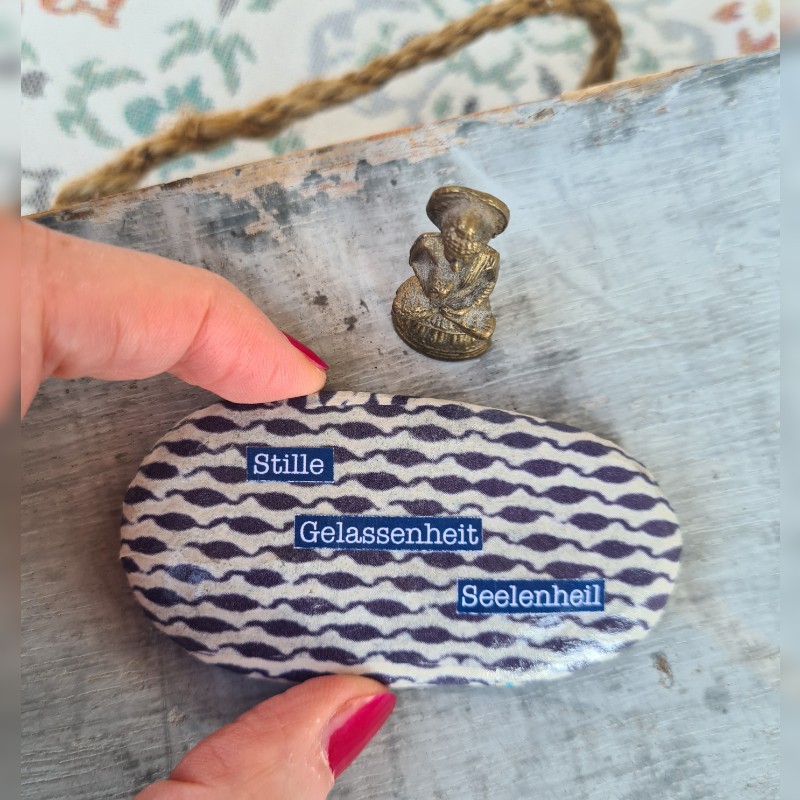 Stille – Gelassenheit – Seelenheil. Die Kraftworte auf diesem Stein weisen Dir den Weg zu Deinem Seelenheil. Er führt immer über die Stille, schenkt Dir Gelassenheit und die Ruhe, zu erkennen, was gut für Dich ist und Deine Seele braucht.