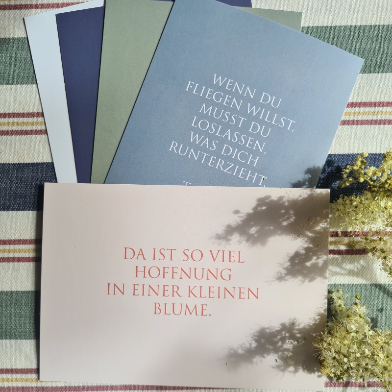 Schlicht. Einfach. Mal zum Schmunzeln. Mal zum Anstupsen. Elegant. Verspielt. Das sind die Postkarten von WUNDERWORT. Postkarten, die ganz sanft Menschen berühren und begeistern.