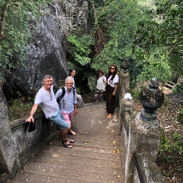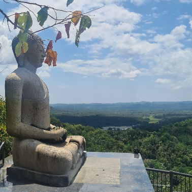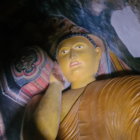 An unserem vorletzten Retreat-Tag besuchen wir den Mulkirigala-Tempel für ein Sankalpa Ritual. Bei großer Hitze geht’s knapp 600 steile Stufen hinauf zu einer Stupa und einem über dem Land thronenden Buddha. Am Weg dorthin zweige ich entgegen des Touristenstroms in die Höhlen ab, in denen riesige liegende Buddha-Statuen eine ganz eigene Energie verströmen. Wie durch ein Wunder bin ich an jedem dieser uralten, mystischen Orte kurz allein und ganz bei mir. „Schau‘ gut auf dich“, spricht die liegende Statue zu mir und das trifft mich im Herzen. Jetzt hier zu sein ist nach den Anstrengungen und Unsicherheiten der letzten Jahre so ein Geschenk für mich, dass ich vor lauter Dankbarkeit schier zerfließe.