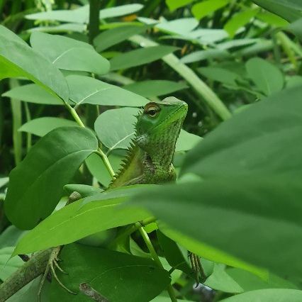 Hätte mir vorher wer erzählt, welch „interessanten“ Tieren wir begegnen würden, hätte ich vielleicht doch zweimal überlegt, die Reise anzutreten 😉 Und damit meine ich nicht die Echsen und Affenhorden, die man hier so trifft. Nachdem wir am Tag 1 eine doch nicht so kleine Spinne und am Tag 2 einen Tausendfüßler aus unserem Zimmer evakuiert hatten, sehe ich am Tag 3 etwas wirklich Seltsames, Daumengroßes hinter mein Nachkastl wuseln. Uta und ich sind mittlerweile versiert, Glas drüber und gesichert ist das Ding. Doch dann beginnt es zu leuchten! Das Ganze sieht nun aus wie eine grünliche Lichtinstallation. Als wir es am nächsten Tag freilassen, erkennen wir, dass es so etwas wie eine Riesenassel ist. Als wir eines Nachts ausgelassen und barfuß in einem Tropenregenguss im Dunklen im nassen Gras tanzen, spürt Retreat-Leiter Wolfgang plötzlich etwas an seinem Fuß – ein beeindruckender schwarzer Riesen-Skorpion mit aufgestelltem Stachel. Wie sich herausstellt nicht der einzige, den der Regen (oder unser „It’s raining man“-Herumgehopse) hervorgelockt hat. Jetzt wird nur mehr mit Flip Flops getanzt und auch zu unserem Zimmer gehe ich nachts nicht mehr ohne Schlapfen…