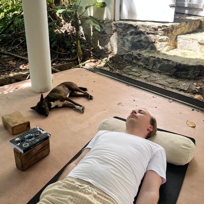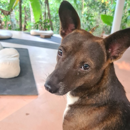Besonders berührt uns der kleine Hund, der irgendwie zur Villa gehört und der immer unsere Nähe sucht. Unaufdringlich, achtsam und g’spürig. „Little Boy“, wie er von der Villa-Belegschaft getauft wurde, scheint alles wahrzunehmen, reagiert auf jede Schwingung und noch so kleine Handbewegung. Wenn man etwas von ihm will, weicht er zurück, auf sanfte Einladungen hingegen reagiert er sofort. Er ist unser Lehrmeister im Empfangen und Spüren. Nie hätte ich mir getraut, ihn zu streicheln, doch eines Morgens setzt er sich, während ich mit Blick in den Dschungel meditiere, still neben mich. Als ich darauf hin meine Hand langsam zu ihm ausstrecke, spüre ich sofort, dass ich ihn jetzt streicheln darf. Immer wieder legt er sich zu verschiedenen TeilnehmerInnen auf die Matte, er scheint immer zu spüren, wo er sein darf oder sogar wo er gerade gebraucht wird.