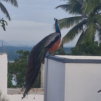 Doch die Magie hat noch nicht ihr Ende. Schließlich hängt hier auch ein kitschiges Einhorn-Bild über meinem Bett. Am letzten Morgen in Rekawa werde ich von lautem Pfauen-Geschrei geweckt, gehe auf meine Terrasse und sehe, dass sich da ein Prachtexemplar richtig schön am Nachbardach in Szene setzt. Und dann traue ich meinen Augen nicht: auf dem Boden vor mir liegt etwas Kleines, Nussähnliches. Ich erkenne es sofort: Es ist genau das Symbol, das ich während einer Meditation vor ein paar Tagen noch im Dschungel-Retreat „gesehen“ haben. Ein Pfau hat es in meine Hand gelegt, als Wächter meines Herzraumes. Ich habe Gänsehaut – hier passieren Dinge, die schwer in Worte zu fassen sind.