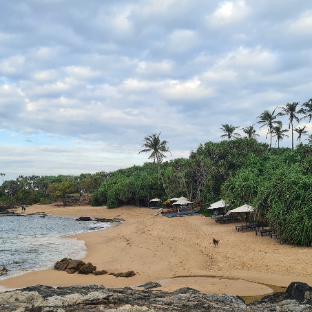 Nach dem Retreat teile ich mir mit einem kleinen Grüppchen ein Taxi nach Tangalle an der wilderen und einsameren Südküste, doch wir haben in unterschiedlichen Hotels gebucht und dort angekommen fühle ich sofort, dass ich allein sein will, auch wenn mir meine Mitreisenden wirklich ans Herz gewachsen sind. Und dann wird es noch einmal so richtig magisch. Ich bin gefühlt „in the middle of nowhere“ im einfachen Turtle Paradise Hotel mit reizenden Betreibern und als ich zum 3 Minuten entfernten Rekawa Beach gehe, kann ich es nicht glauben, wie paradiesisch schön es dort ist. Es gibt dort — NICHTS.